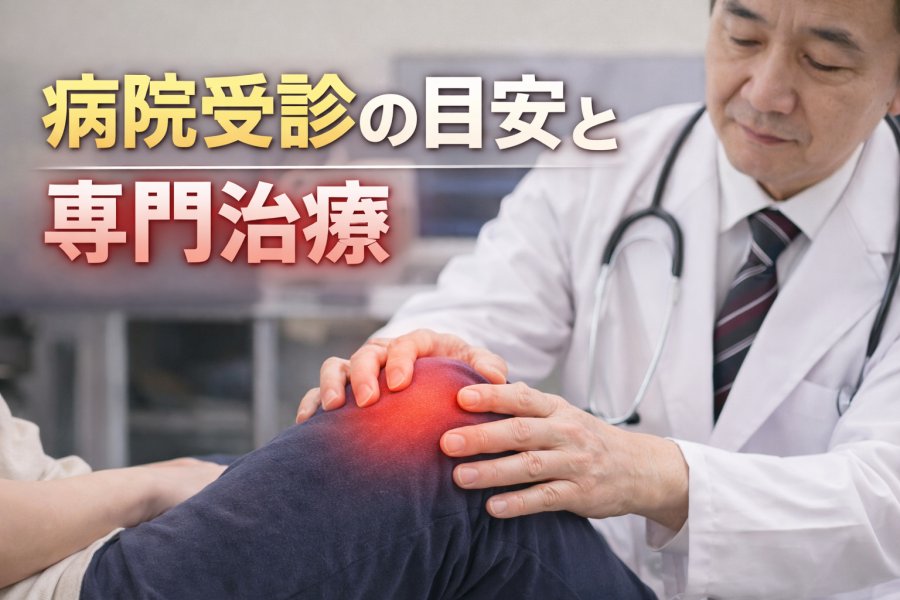 • 特に変形性膝関節症・半月板損傷・靭帯損傷の場合は専門診断が必要