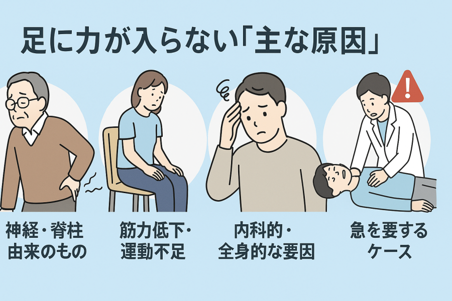 「足に力が入らない」原因は、神経や筋肉だけでなく全身の代謝や血流の異常が関係していることもあります。