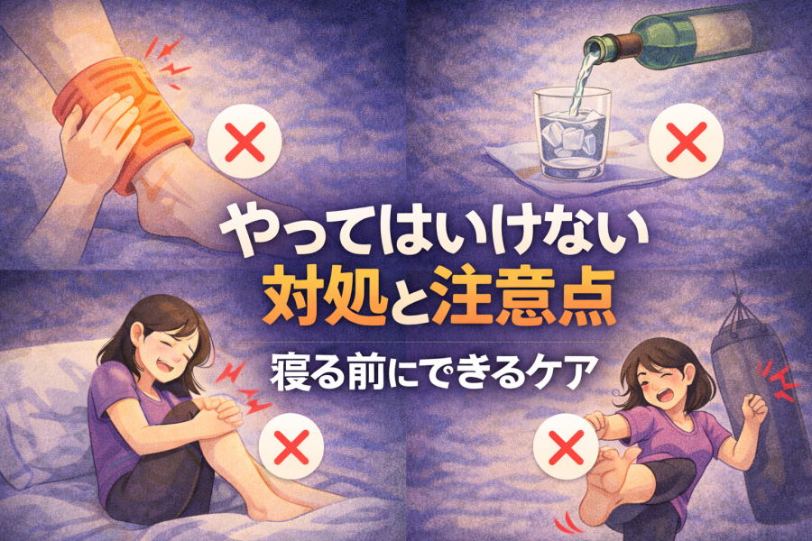 日中の立ち仕事や長時間の座り姿勢が続くと、知らないうちに足まわりの筋肉が硬くなりがちです。夜、体を休めようとしたタイミングで、その違和感が痛みとして出やすくなることもあると言われています。