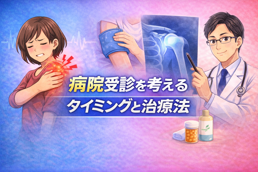 五十肩や二の腕の痛みが続くと、こんな不安が出てきますよね。ここでは、来院を考えたほうがよい目安と、医療機関で行われる対応の考え方を整理します。