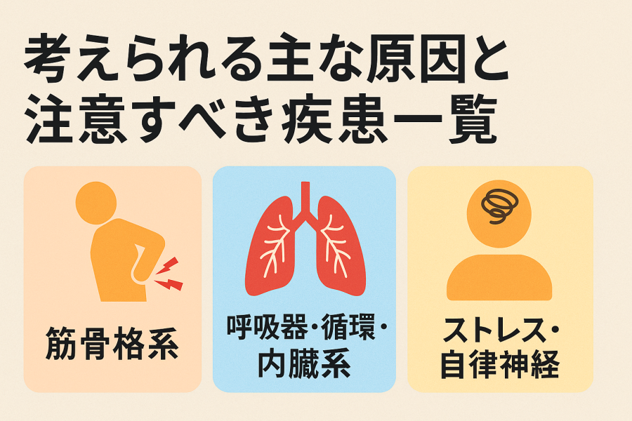 こうした場合、呼吸困難・動悸・発熱・激痛といった併発症状があれば、早めの医療機関での検査が重要です。