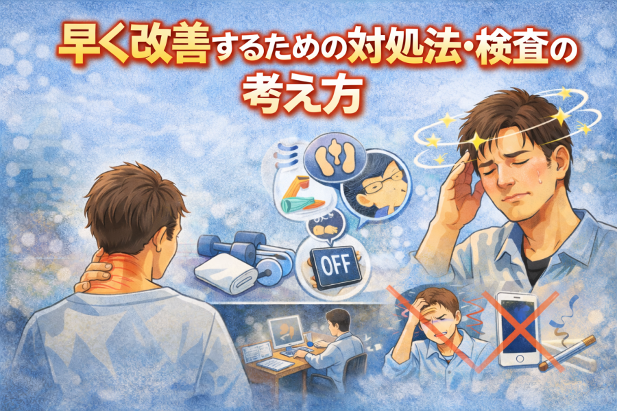 とくに注意したいのは、「少しずつ軽くなっているのか」「波がありながらも生活に支障が出ているのか」という点です。改善傾向がみられない場合、首まわりの緊張が慢性化している可能性や、自律神経の乱れが長引いている可能性があると言われています。