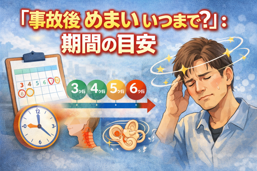 事故後 めまい いつまで続くか不安な方へ|交通事故後のめまいは多くの場合「3〜6ヶ月」で改善するケースが多いと言われています。原因・回復目安・対処法を分かりやすく解説します。