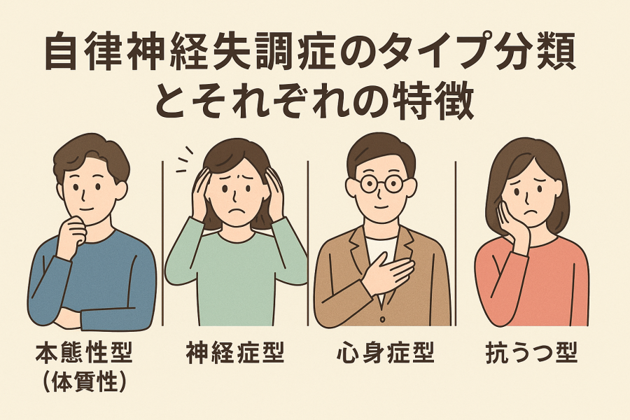 自立神経失調症にはいくつかのタイプがあるとされており、大きく「本態性型(体質性)」「神経症型」「心身症型」「うつ型」に分けられることが多いと言われています。
