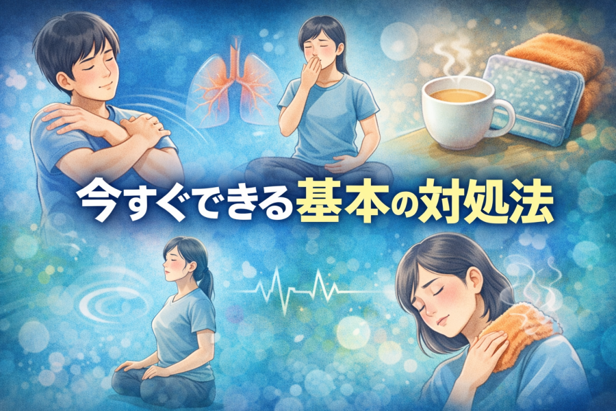 「呼吸が浅くなっていませんか?」と聞かれると、ハッとする方も多いものです。ゆっくり鼻から吸い、お腹をふくらませ、口から長めに吐く腹式呼吸は、自律神経のバランスを整えるサポートになると言われています。肩の違和感や気持ち悪さがストレスと関係している場合、呼吸を見直すことが落ち着きにつながる可能性があるようです。