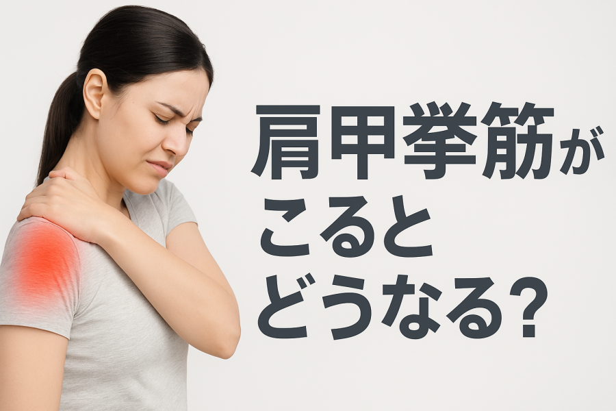 肩甲挙筋がこると、肩をすくめる動作や首を振り向く動作が重く感じたり、首の付け根がしづらくなる感覚を覚える人も多いと言われています。さらに、肩甲骨の動きが制限されることで、腕を上げにくい、背中が丸まりやすいなど、姿勢全体に影響を及ぼす可能性があるとの見方もあります(引用元:miyagawa-seikotsu.com)。