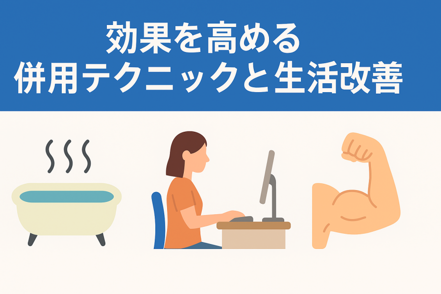 肩甲挙筋のほぐし方は単独でも役立つとされていますが、温熱・姿勢改善・定期ケア・筋トレを組み合わせることで、より効果的にサポートできると考えられています。日常生活の中で取り入れられる工夫を重ねることが、長期的な改善につながりやすいでしょう。
