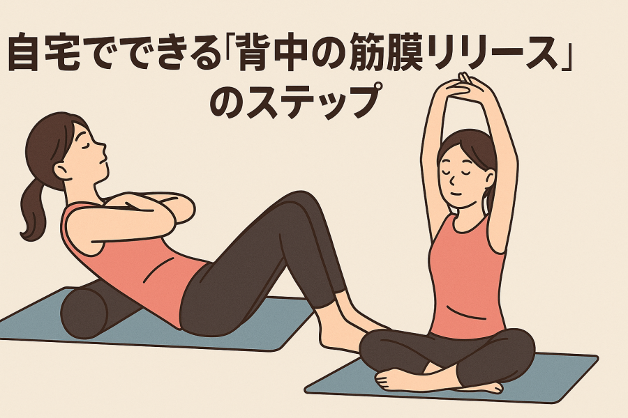 筋膜リリース 背中 やり方:肩甲骨〜広背筋のこりを自宅でほぐすステップを専門家が解説。フォームローラー・ボール・手技なしの3パターンに加え、効果を高めるポイントと注意点も丁寧に紹介。