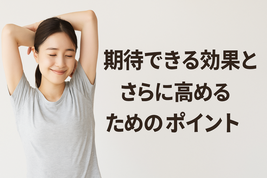 背中の筋膜リリースは、ただ「ほぐす」だけでなく、体全体のバランスや動きやすさをサポートすると言われています。ここでは、期待できる主な効果と、その効果をさらに高めるためのコツ、そして背中と関係が深い部位のケアについて紹介します。
