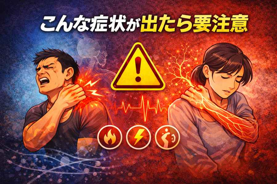 筋トレ 肩こり 悪化と感じている方の中には、自己判断で続けてよいのか迷っているケースもあるようです。多くは筋肉の緊張による違和感と言われていますが、中には注意が必要なサインもあると紹介されています。ここでは、来院を検討する目安を整理します。