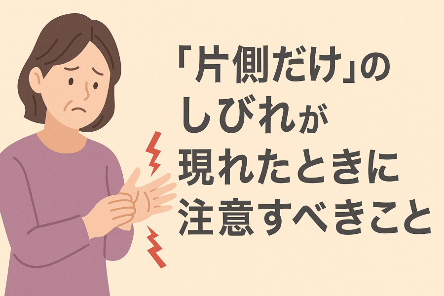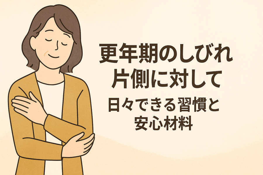 更年期 しびれ 片側の症状に悩んでいませんか?「片側だけ手足がしびれる」場合、実は 更年期のホルモン変化だけでは説明できない可能性もあります。本記事では原因の整理、危険サイン、セルフケアから受診目安までをわかりやすく解説します。