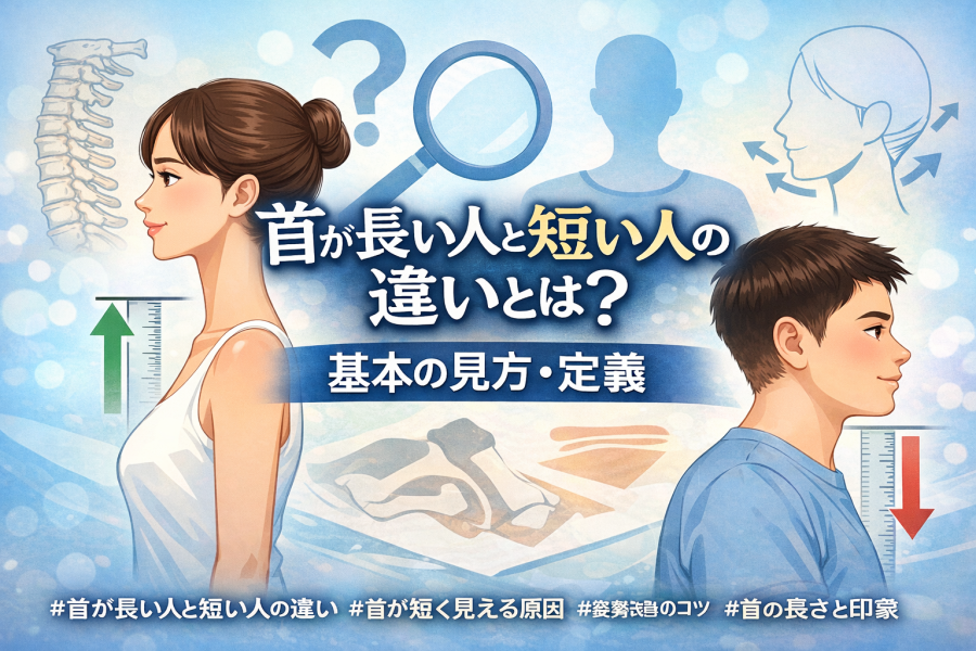 首が長い人と短い人の違いを分かりやすく解説します。見た目の印象、姿勢や骨格の要因、短く見える原因チェックポイント、首をスッと長く見せる具体的な改善方法まで解説します。
