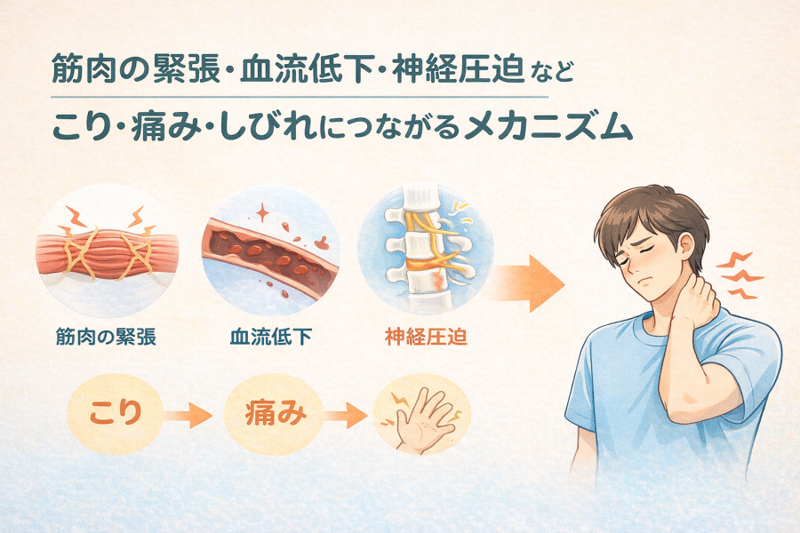 筋肉の緊張・血流低下・神経圧迫など ― こり・痛み・しびれにつながるメカニズム