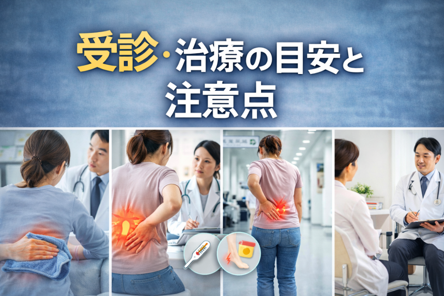 さらに、発熱や背中側の強い痛み、排尿時の違和感がある場合は泌尿器科の対象になる可能性もあるとされています。