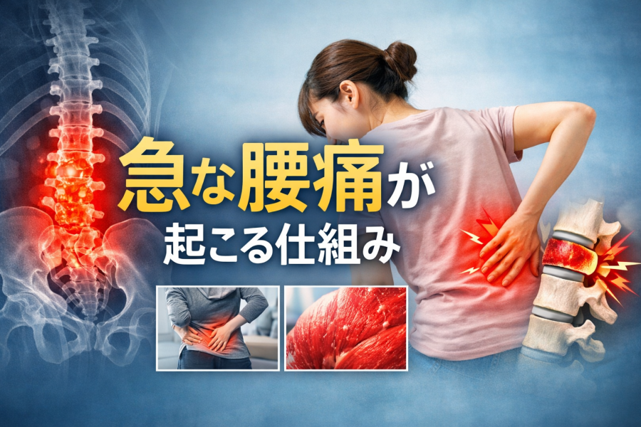 「急な腰痛 女性」で検索する方の多くは、「なぜ急に?」「私だけ?」と不安を感じているのではないでしょうか。