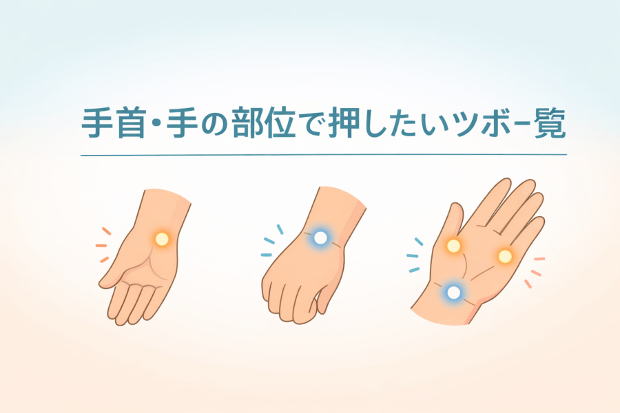 参考記事でも、外関(がいかん)や内関(ないかん)など、手首周辺のツボが紹介されており、セルフケアとして取り入れやすい方法と言われています。