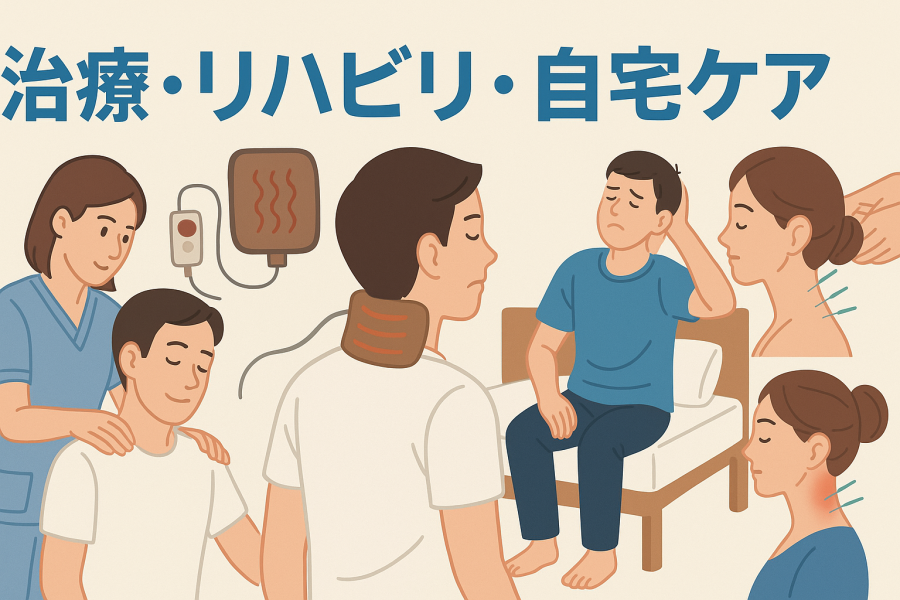 むち打ちに対しては、まず保存療法と呼ばれる方法が選ばれることが多いと言われています。具体的には理学療法士によるリハビリや、温熱治療・電気刺激・牽引といった施術が挙げられます。これらは痛みを和らげたり、首や肩の可動域を少しずつ取り戻すために行われるそうです。急性期には安静が中心になりますが、状態を見ながら段階的にリハビリに移行する流れが望ましいとされています【引用元:https://kumanomi-seikotu.com/blog/5755/】。