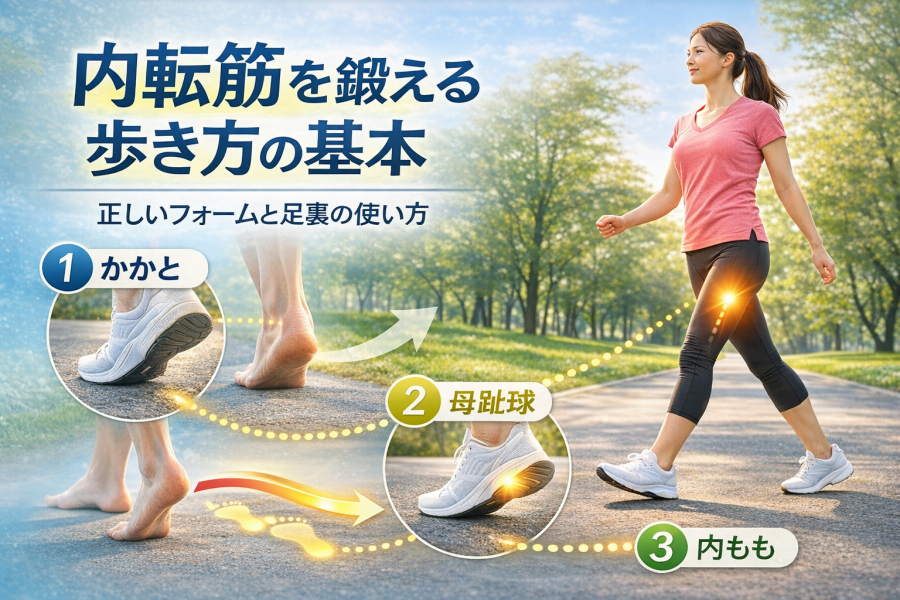 内転筋 鍛える 歩き方 を徹底解説。内転筋がしっかり働く正しいウォーキングフォーム、重心・足裏の使い方、歩き方チェック法、日常でできるトレーニングや注意点まで、初心者でも結果が出るステップ別ガイド。