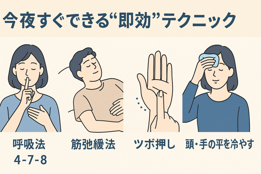 寝れない時 寝る方法を探しているあなたへ。今夜すぐ眠るための実践テクニック11選(呼吸法・筋弛緩法・環境調整など)と、長期的に不眠を防ぐ習慣改善まで完全解説します。