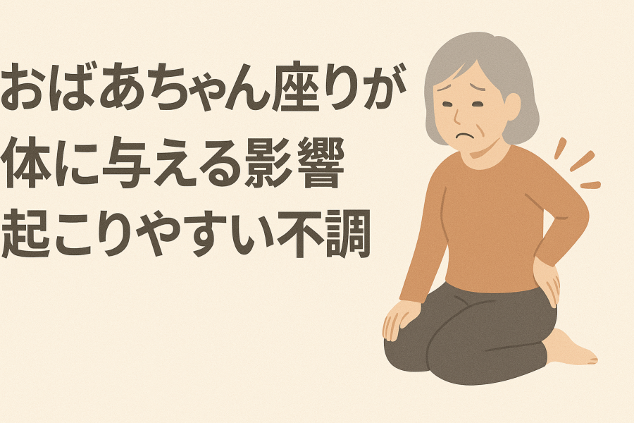 おばあちゃん座りとは、膝や股関節に特徴的な負担がかかる座り方のこと。なぜ起こるのか、どんな体の不調につながるのか、今日からできる改善方法や注意点をわかりやすく解説します。