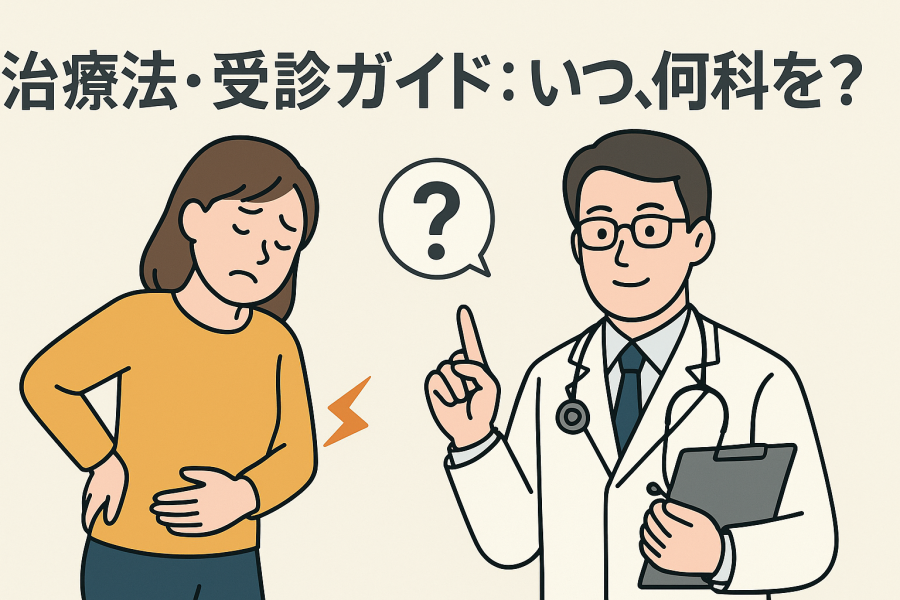 ・受診すべきサイン:安静時でも痛みが続く、冷や汗・吐き気を伴う、左右両側に出る、急激な痛み+体調急変など