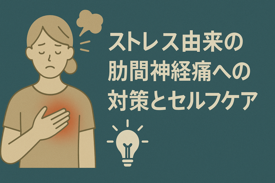 ChatGPT Image 2025年12月5日 10_04_15ストレスが続くと胸まわりの筋肉が強張りやすく、肋間神経が刺激されて痛みを感じやすいと言われています。そこで、「今日から少しずつ取り入れられる対策」をまとめてみました。難しいことではなく、続けやすい内容ばかりなので、自分のペースで試してみてください。
