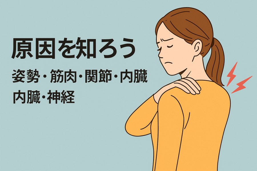 このセクションでは、「背中の痛み 上の方」が起こる代表的な原因を、姿勢・筋肉・関節・内臓・神経という観点から整理していきましょう。
