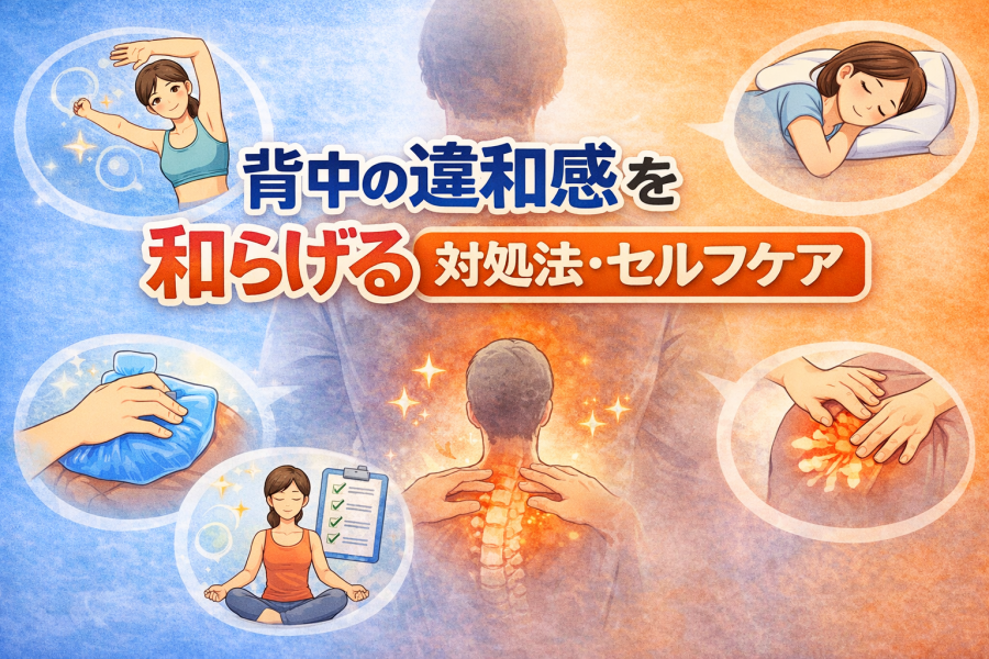 背中の違和感は、姿勢やストレス、生活習慣などが関係しているケースが多いと言われています。そのため、いきなり特別なことをするよりも、体の使い方やリラックスの習慣を整えていくことがポイントになります。