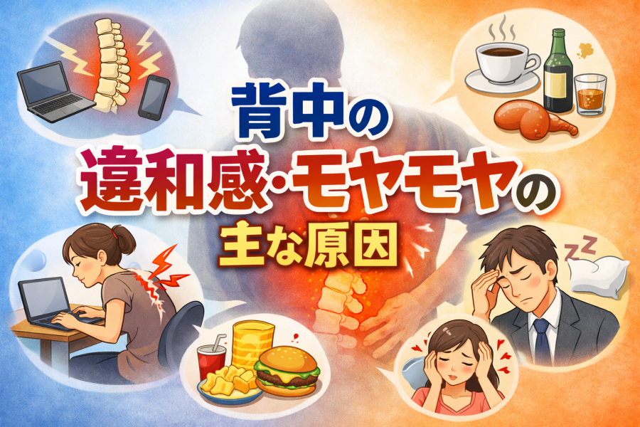 背中 違和感 モヤモヤが続く原因には、姿勢の乱れやストレス、自律神経の影響、内臓の不調などが関係すると言われています。本記事では原因・対処法・受診目安までわかりやすく解説します。