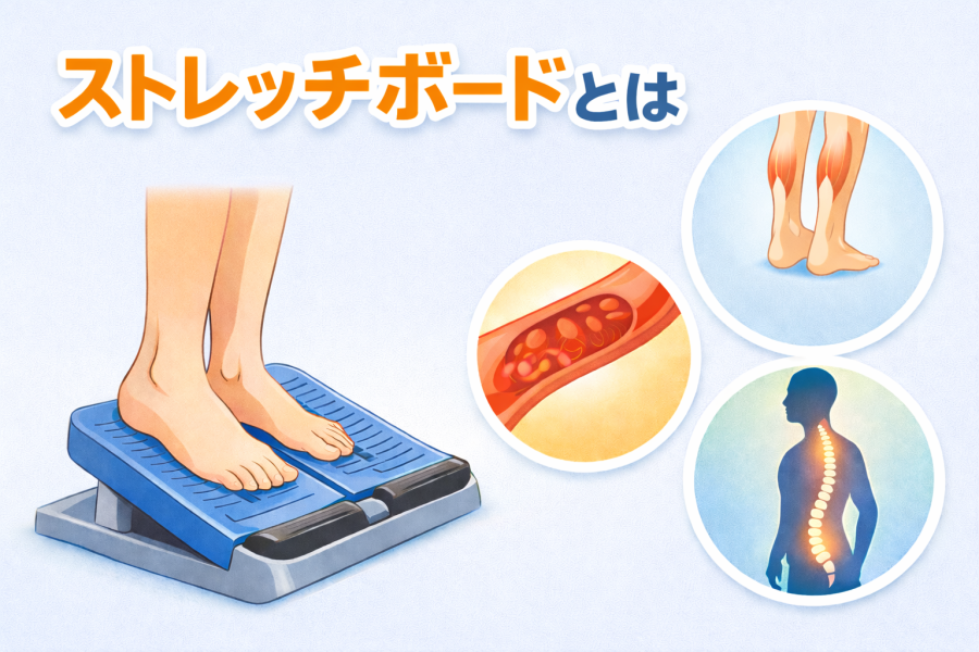 ストレッチボードの基本機能・狙い(足首・ふくらはぎの柔軟性向上、血流改善、姿勢改善など)を簡潔に説明。