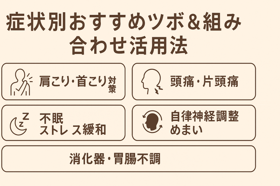 このように、ツボは単体でも使えますが、症状に合わせて複数を組み合わせることでバランスを整えやすいとも言われています。大切なのは「無理をしないこと」と「心地よく続けること」です。日々のセルフケアに少しずつ取り入れてみてください。