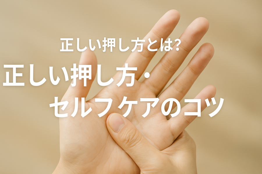 これらのツボはどれも、手軽にセルフケアとして取り入れやすい点が魅力です。ツボを押すときは、リラックスした呼吸とやさしい圧を意識し、無理のない範囲で行いましょう。
