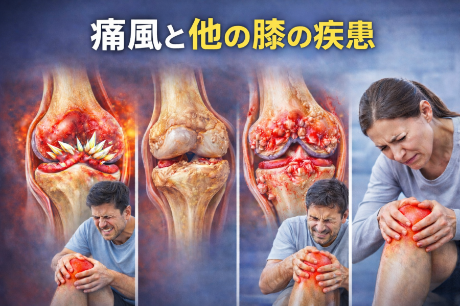 ■ 3. 見分け方:痛風と他の膝の疾患(偽痛風・変形性膝関節症など)
