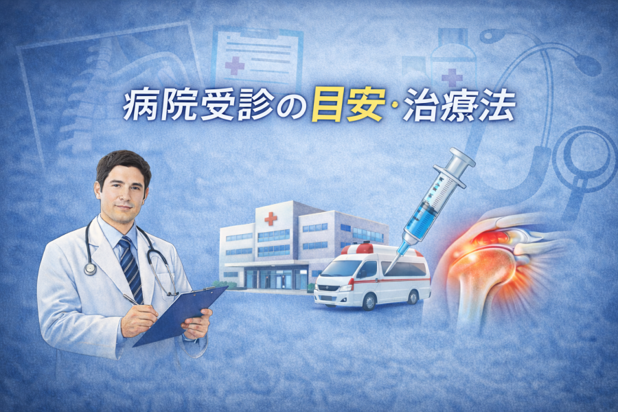 まれに、神経の影響やSLAP損傷などが関係する場合もあると言われています。痛みが強い、しびれを伴う、違和感が続く場合は、早めに専門家へ相談する視点も大切です。