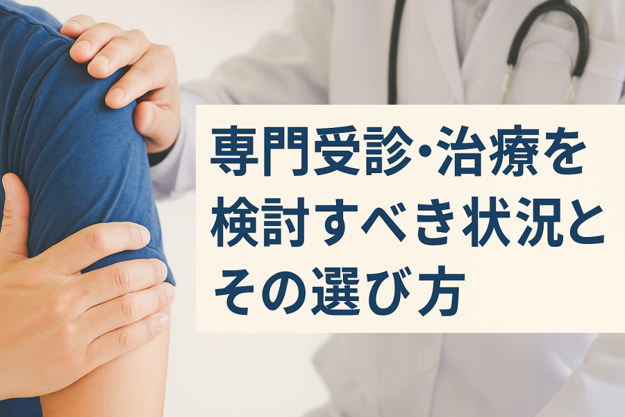 「しばらく様子を見ていたけれど良くならない」「寝ているときも痛い」「腕にしびれや力が入りにくい感覚がある」――こうした場合は、自己ケアだけでなく専門家への相談を考えるタイミングだと言われています。