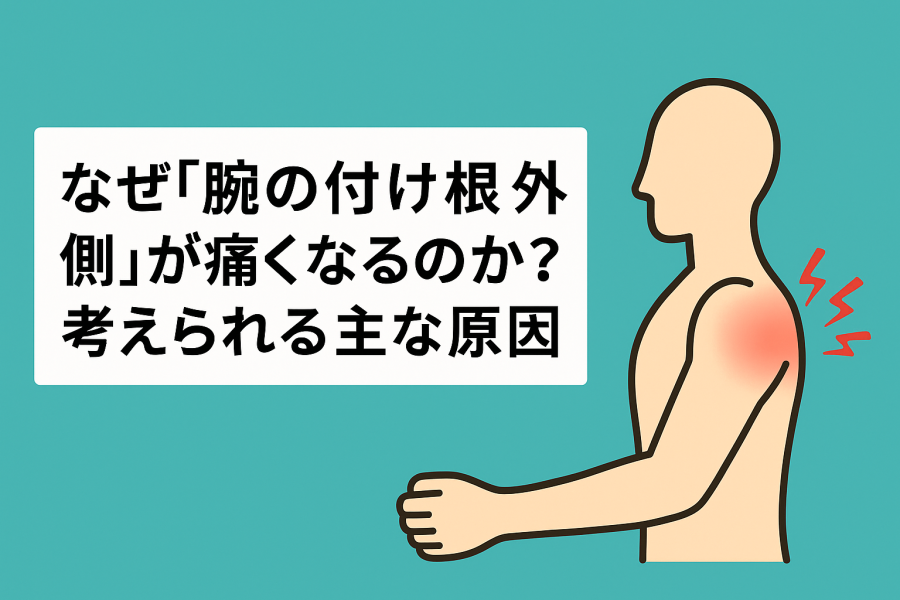 というケースも多いです。重い荷物を片側ばかりで持つ、腕を高い位置で使う作業が多い、スマホを長時間同じ手で支える…こうした“使いすぎのクセ”が蓄積すると、付け根の外側の痛みにつながりやすいと言われています。