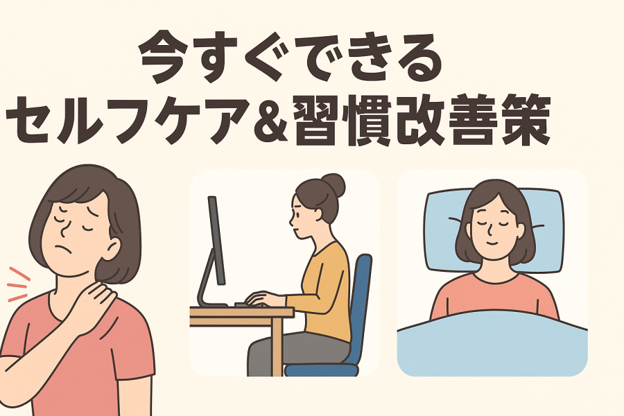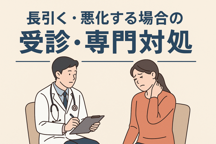 • 受診すべきサイン(痛みが強い/しびれ・腕が動かしづらい/夜間痛)