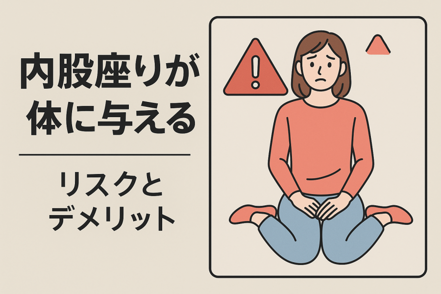 内股座りを続けることで起こりやすい骨盤の歪み・O脚・腰痛などのリスクと、日常でできる改善ストレッチや意識のコツをまとめています。内股座りが気になる方はぜひ参考にしてください。