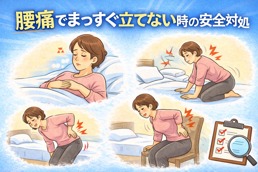 「朝、布団から起き上がろうとすると腰が伸びない」「椅子から立つ瞬間に体が前にくの字になる」。