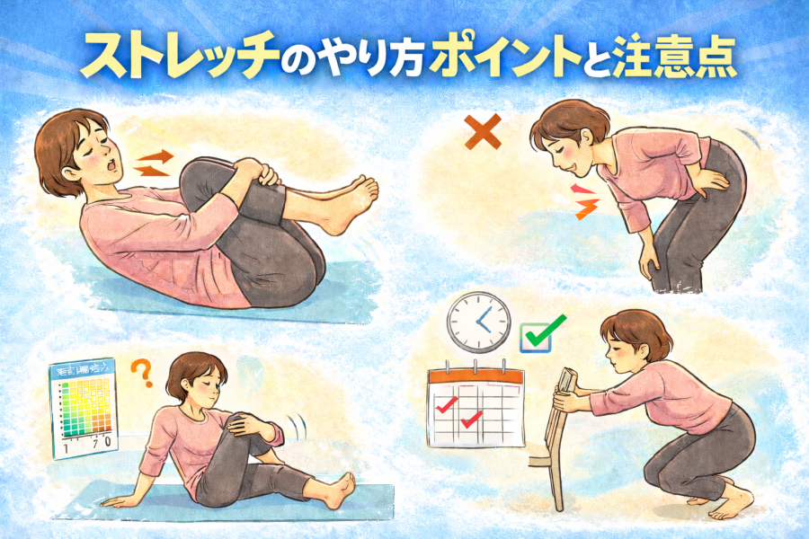 ④ ストレッチのやり方ポイントと注意点