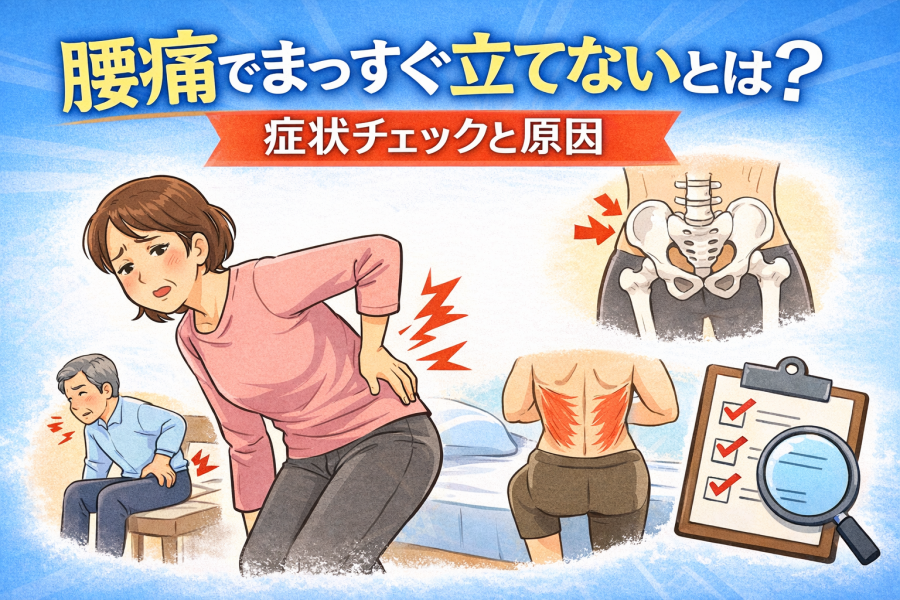 腰痛でまっすぐ立てない状態は、起床時や長く座ったあとに出やすいのが特徴です。