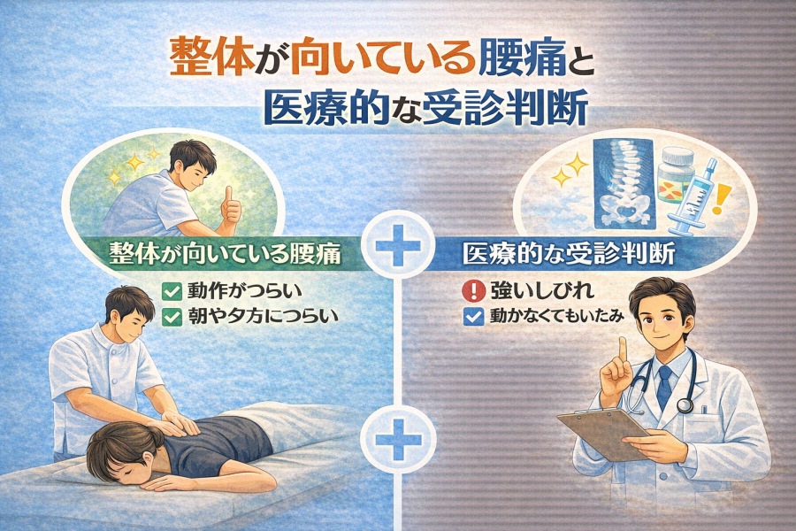 ChatGPT Image 2026年1月20日 18_03_21「腰痛って、整体に行けばいいの?それとも整形外科?」