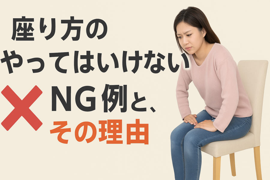 横座りやお姉さん座りも、股関節や腰に偏った負担をかけやすく、痛みが再発しやすい姿勢とされています。